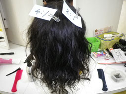 | パーマの薬剤のパワーを変化させてウェーブの違いを検証しています。 | ||