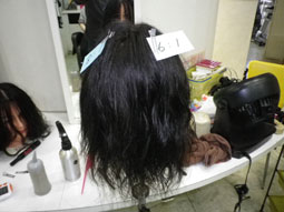 | 繰り返しのブリーチによって生じる切れ毛・枝毛・毛のチリつきを軽減するための処置の検証です。 プレックスメントと呼ばれるトリートメント処理をすることによりダメージの軽減が図れます。 |