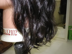 | 巻き込む毛髪の厚みによりウェーブの違いを見ています。 右側は薄いスライス、左側は厚いスライス。 |